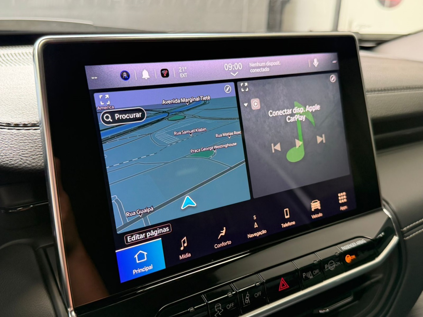 • Controle de som no volante
